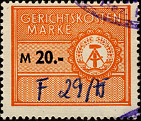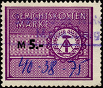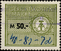 | Gerichtskostenmarken mit gedruckten Staatssymbol -neu- (Hammer-Zirkel-Ährenkranz), Währung "M", das "M" mit schrägen Aussenlinien | |||||||||||||