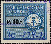 | Gerichtskostenmarken mit geprägten Staatssymbol -neu- (Hammer-Zirkel-Ährenkranz), Währung "M" | |||||||||