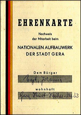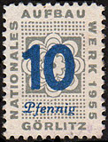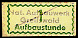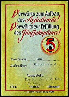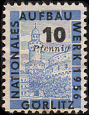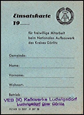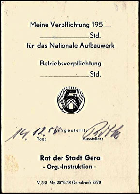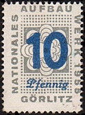 | neutral bedruckte Marke, die bisher nur auf einer Aufbaukarte von Glauchau für das Jahr 1957 nachgewiesen werden konnte |