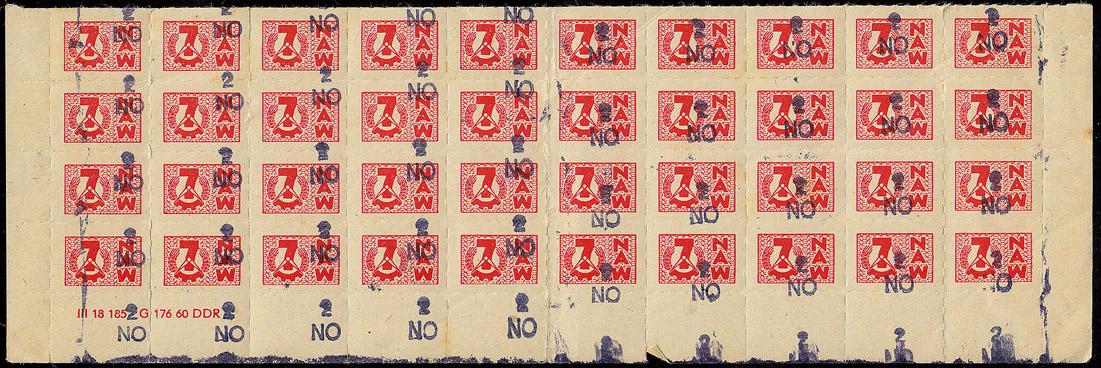 | überstempelte allgemeine NAW-Marken, gezähnt oder geschnitten, auf weißen und gelblichen Papier vorkommend | ||||||
