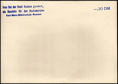 | vom "Rat der Stadt Rostock" als Baustein für den Hochseehafen genehmigt, erarbeitet von der Karl-Marx-Mittel-Schule Rostock | |||||