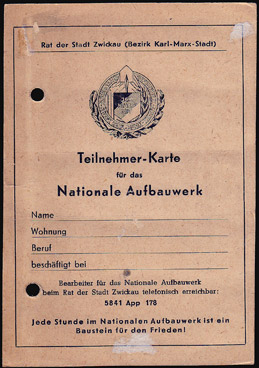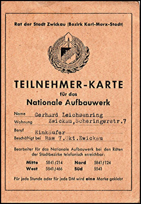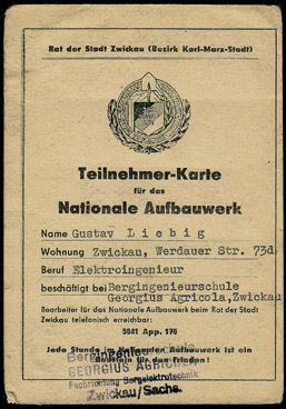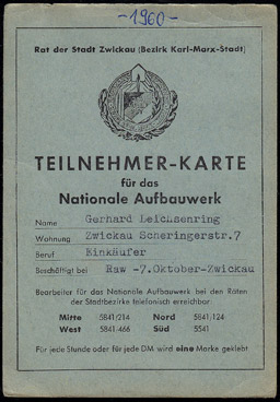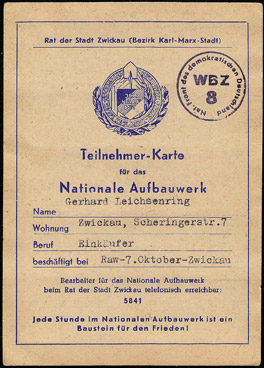 | die Jahresangaben erfolgten nach Sichtung der aufgeklebten Marken - es können daher noch Änderungen festzustellen sein, Stempel auf Karte von 1959 WBZ = Wohnbezierk 8 | |||||||||