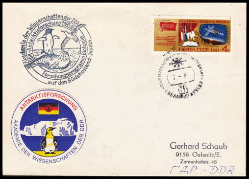 | Brief Antarktisstation "Georg Forster" - Physikalische Gesellschaft der DDR | Brief von den Südshetland-Inseln - Forschungsprogramm Biologie | ||||||