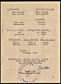| 1966 | Sondermarke, die auf das "1. Festival sorbischer Kultur" 1966 hinweist (sorbisch: "Festiwal") | |||||||