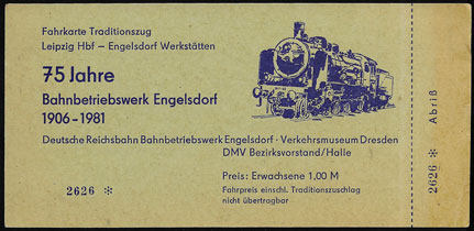 | Ohne Preisangaben (DMV BezV Dresden) | 1,00 M - ohne Kulturbeitrag (DMV BezV Halle) | 2,- M - ohne Kulturbeitrag (Angabe Verkehrsmuseum Dresden) |