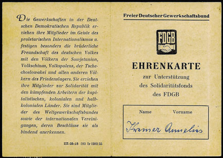 | Spendenmarke auf Sondermarken Brief der Deutschen Post zum 11. FDGB Kongress | |||||||||||