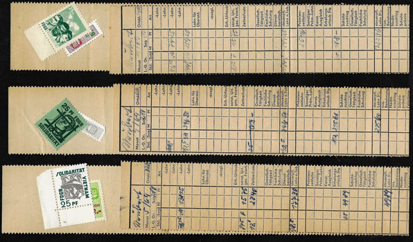 | Spenden und Beitragsmarken des Gewerkschaftsmitgliedes auf Lohnstreifen geklebt |