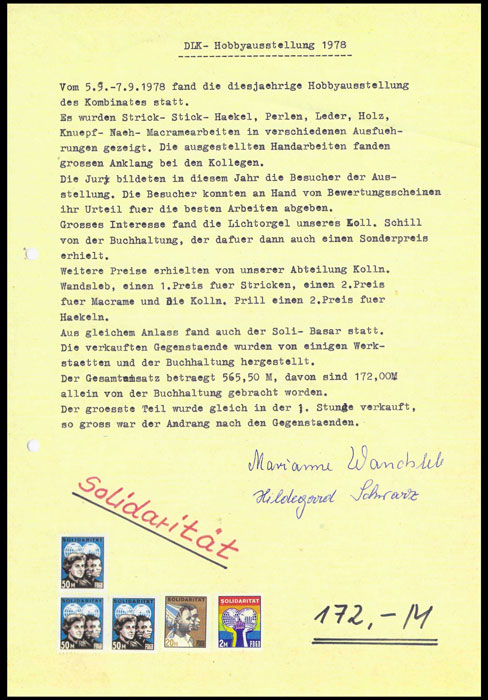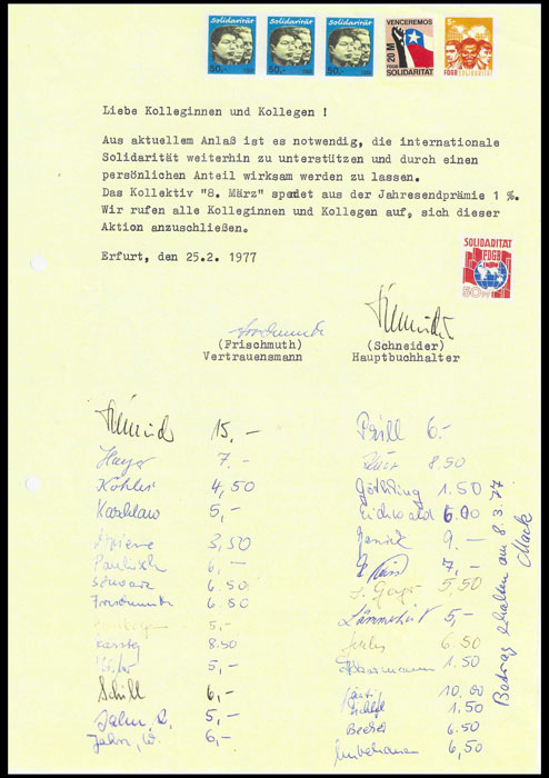| Spenden-Beleg des Kollektivs "8.März", ERFURT | Spendenbeleg - Hobby-Ausstellung DLK (Dienstleistungskombinat) | |||
