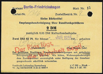 | 2 RM (handschriftlich geä. auf 6 RM) | 2 DM (zuzüglich 0,05 Kulturfondsabgabe) |