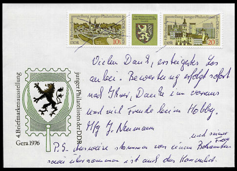 | 21. Arbeiterfestspiele Magdeburg (Ausg. Ni.Nr. DDR 3028/3029 | BM-Ausst.d.Jugend Berlin (Ausg.MiNr.DDR 3030/3031) | |||