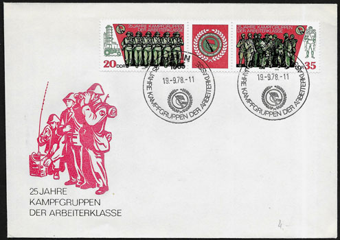 | 4.Briefmarkenausstellung ju8nger Philatelisten der DDR - Gera | BMA -Gera | 25 Jahre Kampgruppen der Arbeiterklasse | |||
