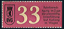 | LM / 3 - mit Berliner Wappen + Linien-Nummer + Ziffer links neben dem Text (Papier rot) | |||||||