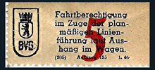 | Die Fahrtberechtigungs-Marken kennzeichnen die vom Karteninhaber nutzbare Linie im Streckennetz der Verkehrsgesellschaft | |||||
