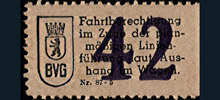 | LM / 2 - mit Berliner Wappen + Linien-Nummer + Ziffer links neben dem Text (Papier violett) | |||||||