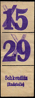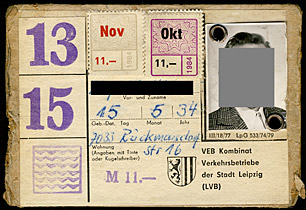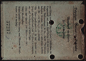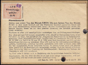 | Verwendung von Quittungsmarken für die Entrichtung der Strafgebühr - für Leipziger Verkehrsbetriebe -LVB- belegt. | ||||||||||||