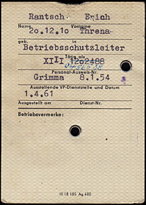 | Mitarbeiter-Ausweis - (nicht bekannt, ob Marken nur speziellen MA vorbehalten waren) | |||||||||||||||