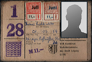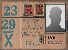 | Monatskarte - Li 29 = Straßenbahn (zu dieser Zeit längste Linie), die Angabe zur Enstelle verweist zugleich auf eine zuschlagspflichtige Strecke | Monatskarte Straßenbahn - Leipzig - Linie 6 | ||||