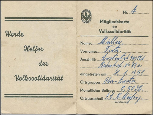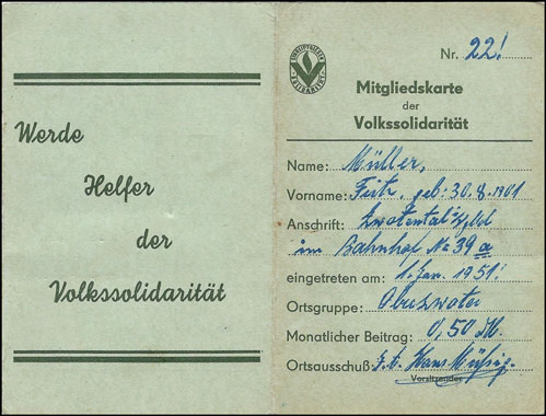 | Fragment aus Mitgliedsbuch Karton - grünlich/gelb | Fragment aus Mitgliedsbuch Karton - grünlich/gelb | |||