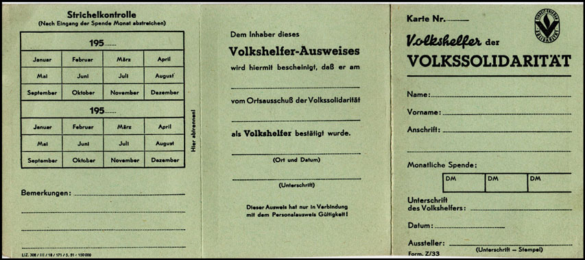 | Ausweiskarte für Volkshelfer der VS (Dreifach Klappkarte) - Variante grün | ||||