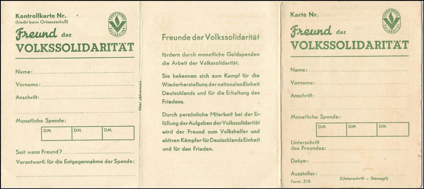 | Ausweiskarte für Freunde der VS | Teilnehmer-Ausweiskarte - Nationales Aufbauwerk | |||