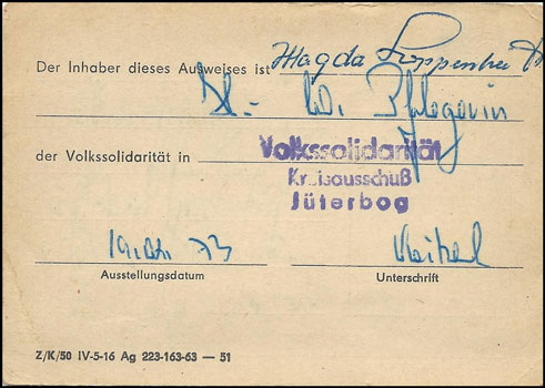 | Kreisausschuß d. VS Jüterborg Vorderseite | Kreisausschuß d. VS Jüterborg Rückseite |
