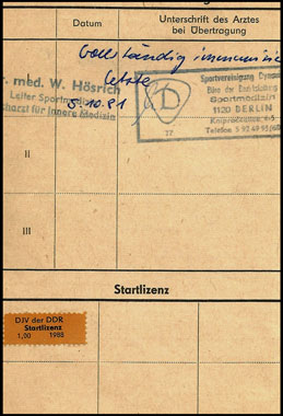 Startbuch für Judokämpfer mit Startlizenz und Gesundheits-Check / Sportvereinigung Dynamo Berlin