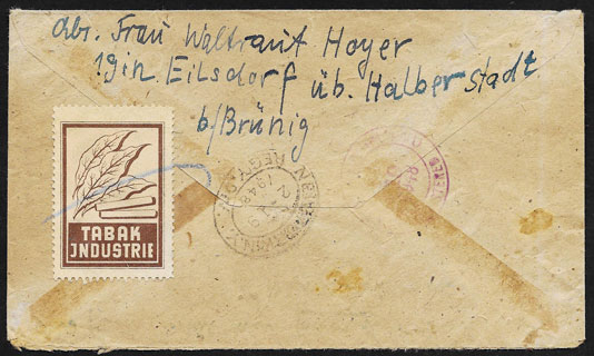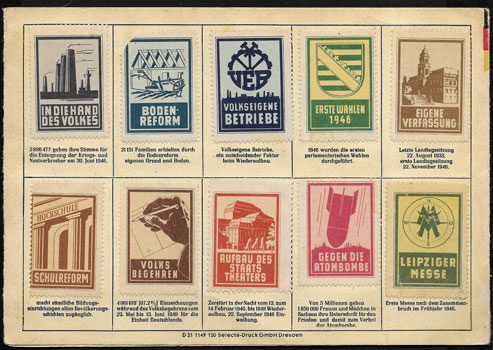 | Rückseite der Spendenbögen - Ausgabe durch Kreisausschüsse der Nationalen Front | Beispielmarke - rückseitig |