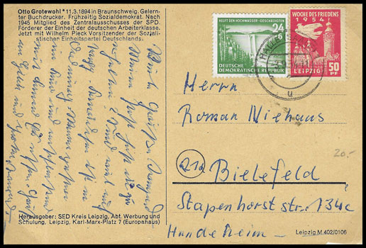 Rückseite mit Spendenmarke 20 Pf | Vorderseite mit Spendenmarke 50 Pf |