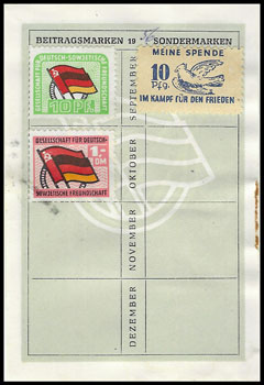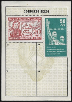 | Spende in einem DSF - Ausweis | Spendenmarken in einem FDGB Ausweis | ||||