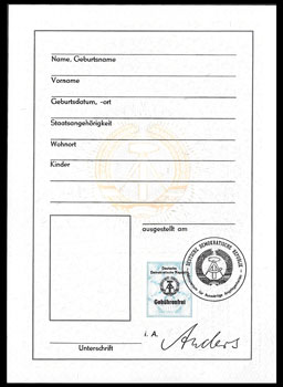 | mit gedrucktem DDR-Staatswappen "Hammer-Zirkel-Ährenkranz", Währung "MDN" | ||||||||||||