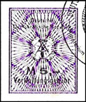 | Währung "Reichsmark" / Nachgewiesen z.Bsp. 1940 für Danzig-Westpreußen Die erste Serie fällt u.A. durch einen geringen Abstand zwischen der Baum-Belaubung rechts und dem darunter stehenden senkrechten Balken auf. Das Wort "BEZAHLT" ist kleiner gedruckt, mit Platz zum Druckfeldende. |