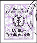 mit "Deutsche Demokratische Republik" im Markenbild, Währung "M", jetzt als "geschnittene" Marken - da sie direkt in Ausweis-Formulare gedruckt wurden. |