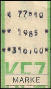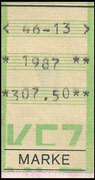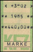 | Jahresbetrag für Kfz.-Typ - ??? - (??? Kfz.-Steuer + ??? Haftpflicht- Versicherung). Diese Wertstufe wurde nur gestückelt oder mittels Abbuchungs-Marken quittiert! | |||||||||||||