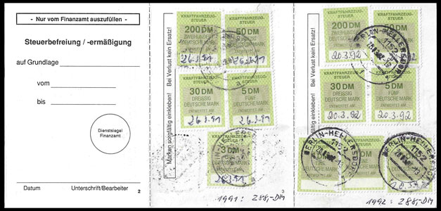 | Neue Kfz Steuerkarten 1991-1992 | ||