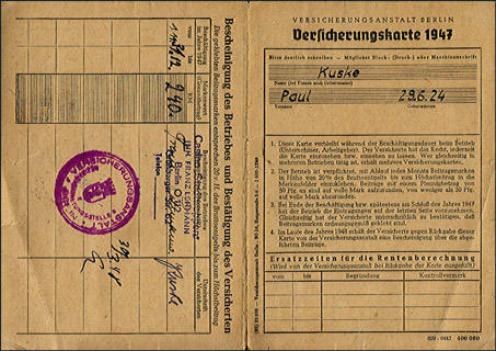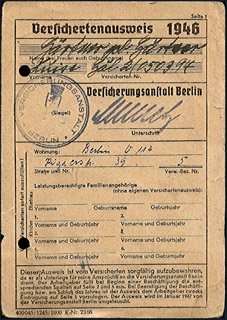 | Karte für Arbeitnehmer (unstetig Beschäftigte) | mit diversen Wertmarken - in RM und DM Währung | ||||||||||||