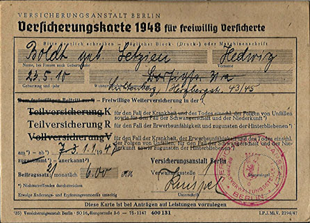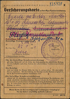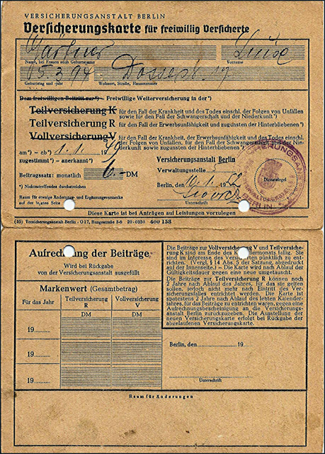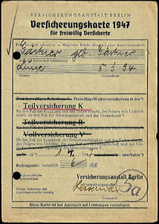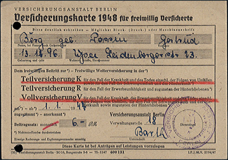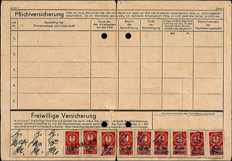 | Karte für Freiwillig Versicherte | mit Wertmarken 6,- RM - Aufdruck R = Teilversicherung |