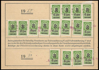 mit Wertmarken 6,- DM Aufdruck R = Teilversicherung |