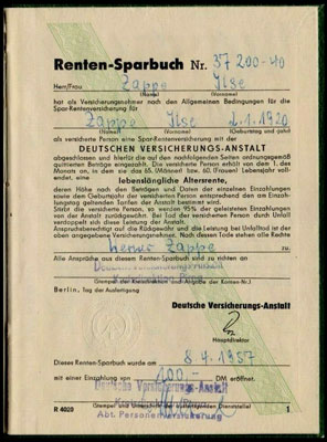 | Rentenversicherung der Deutschen Versicherungsanstalt - Rentensparbuch | ||||||||||