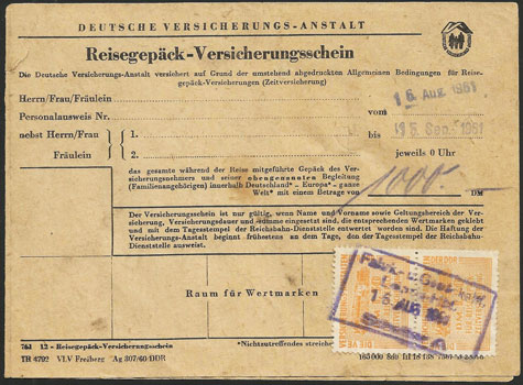| Versicherung für Reisegepäck oder Expressgut, auf Dokument für 1957 belegt | |||||||||||||||