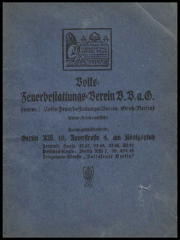 Beiblatt zur Versicherungskarte der Volksfeuerbestattung von |