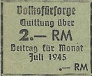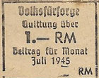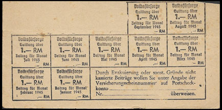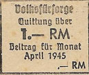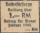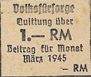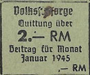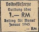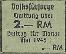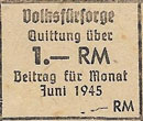 | Beitragsquittung der Volksfürsorge Versicherungsanstalt - Beitrag 1,- RM - Die Versicherungsart ist nicht ersichtlich | |||||||||