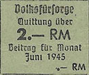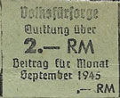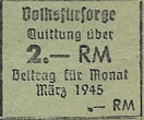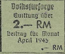 | Beitragsquittung der Volksfürsorge Versicherungsanstalt - Beitrag 2,- RM - Die Versicherungsart ist nicht ersichtlich | |||||||||
