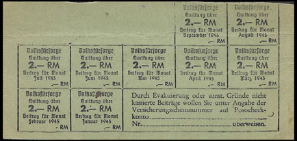 | Beitragsmarken für eine Unfallversicherung mit Schreibmaschinenaufdruck - für 1949 gültig erklärt | |||||||||||||||