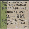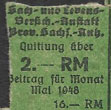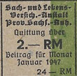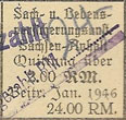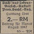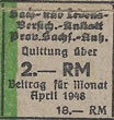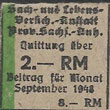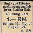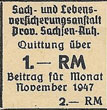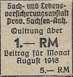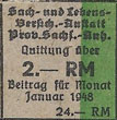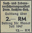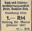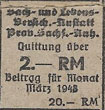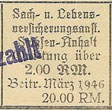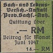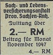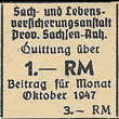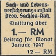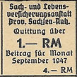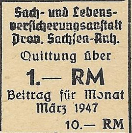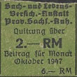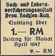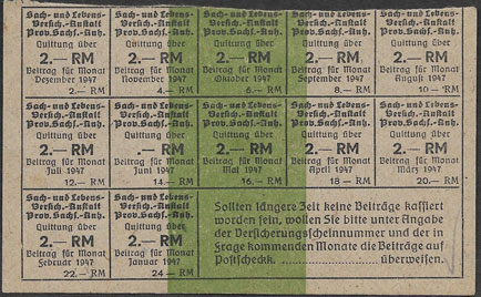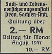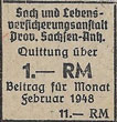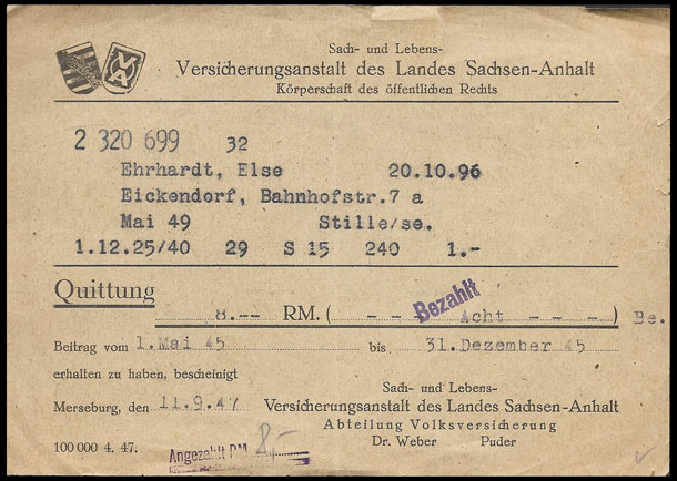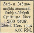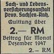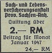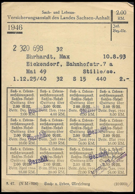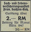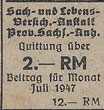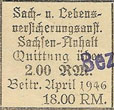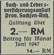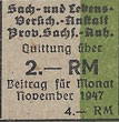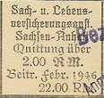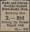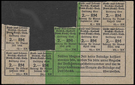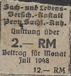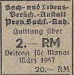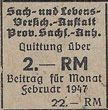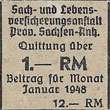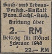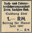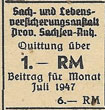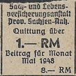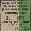 | Versicherungszahlung für 1946 (nachträgliche Zahlung - im Mai 1949) monatlich 2,00 RM | ||||||||||||||