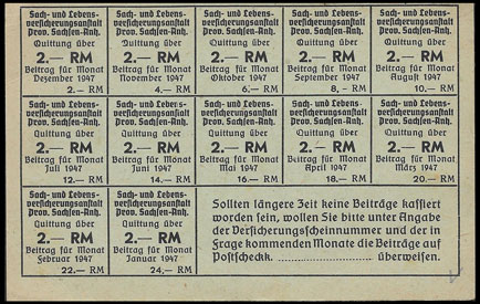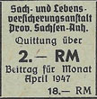 | Lebensversicherung des Landes Sachsen-Anhalt - Wert mtl. 1,- RM (nachträgliche Zahlung) | |