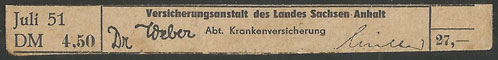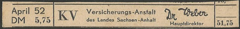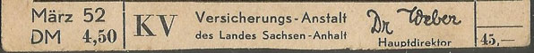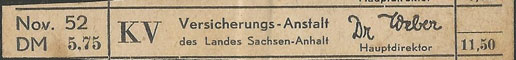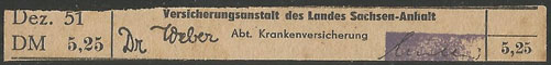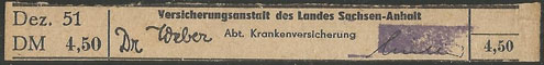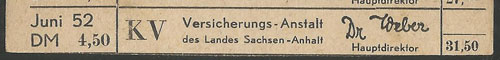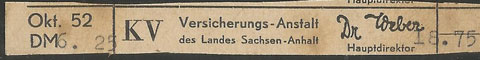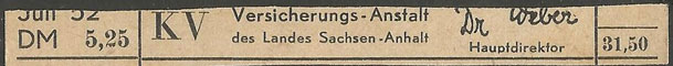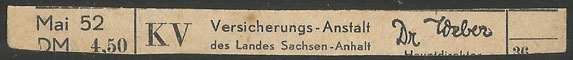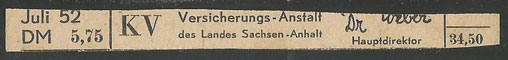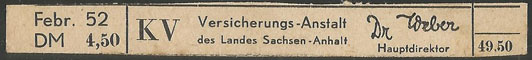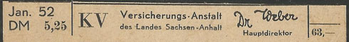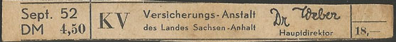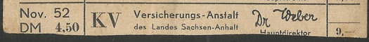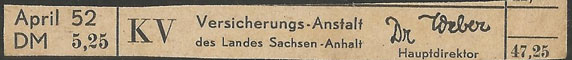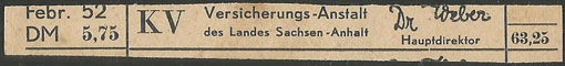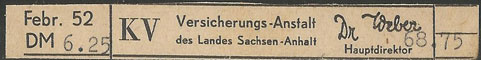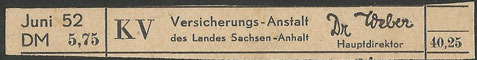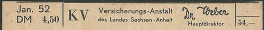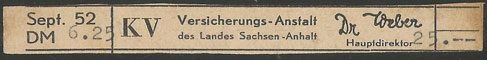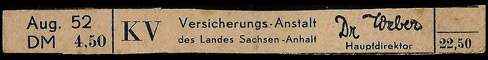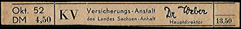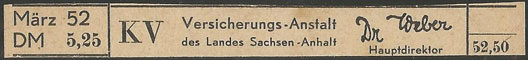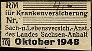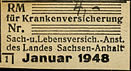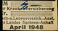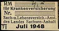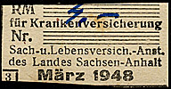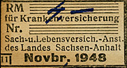 | Krankenversicherung des Landes Sachsen-Anhalt Wert 4,- RM (handschriftlicher Werteintrag) | |||||||||||||