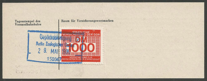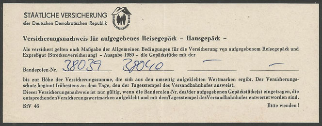 | Versicherung für Reisegepäck oder Expressgut auf Rückseite = Versicherungsnachweis | |