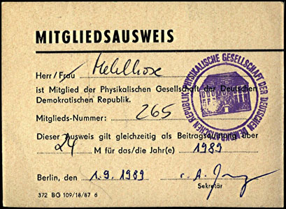 Mitgliedskarte und Beitragsnachweis Physikalische Gesellschaft der DDR | |||||||
