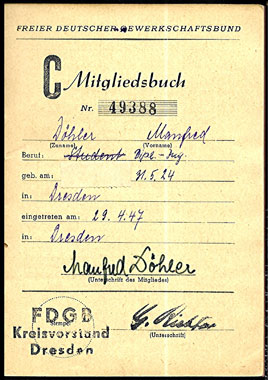 1.Gewerkschaftsausweis v. M. Döhler | 2.Gewerkschaftsausweis v. M. Döhler |