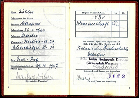 Ausbildung von Manfred Döhler an den Technischen Lehranstalten der Stadt Dresden |